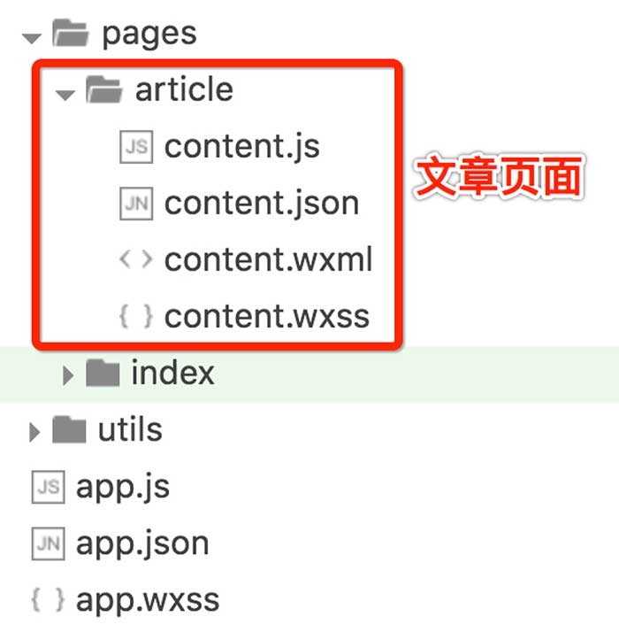 { "pages":[ "pages/index/index", "pages/article/content" ],...}
