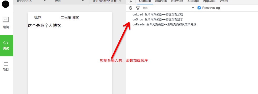 4、點(diǎn)擊編譯查看對(duì)應(yīng)的效果,及函數(shù)加載順序,onLoad、onShow 、onReady的加載順序