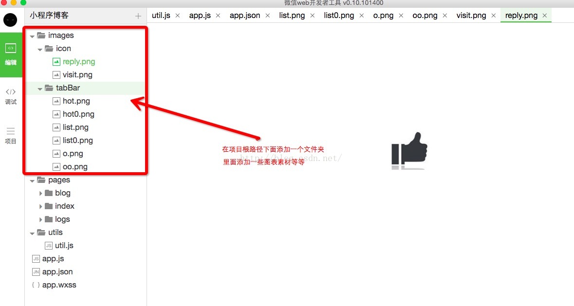 1、添加一些圖片素材(網(wǎng)上找的),復(fù)制到項(xiàng)目的根目錄下面,和pages目錄同級(jí)