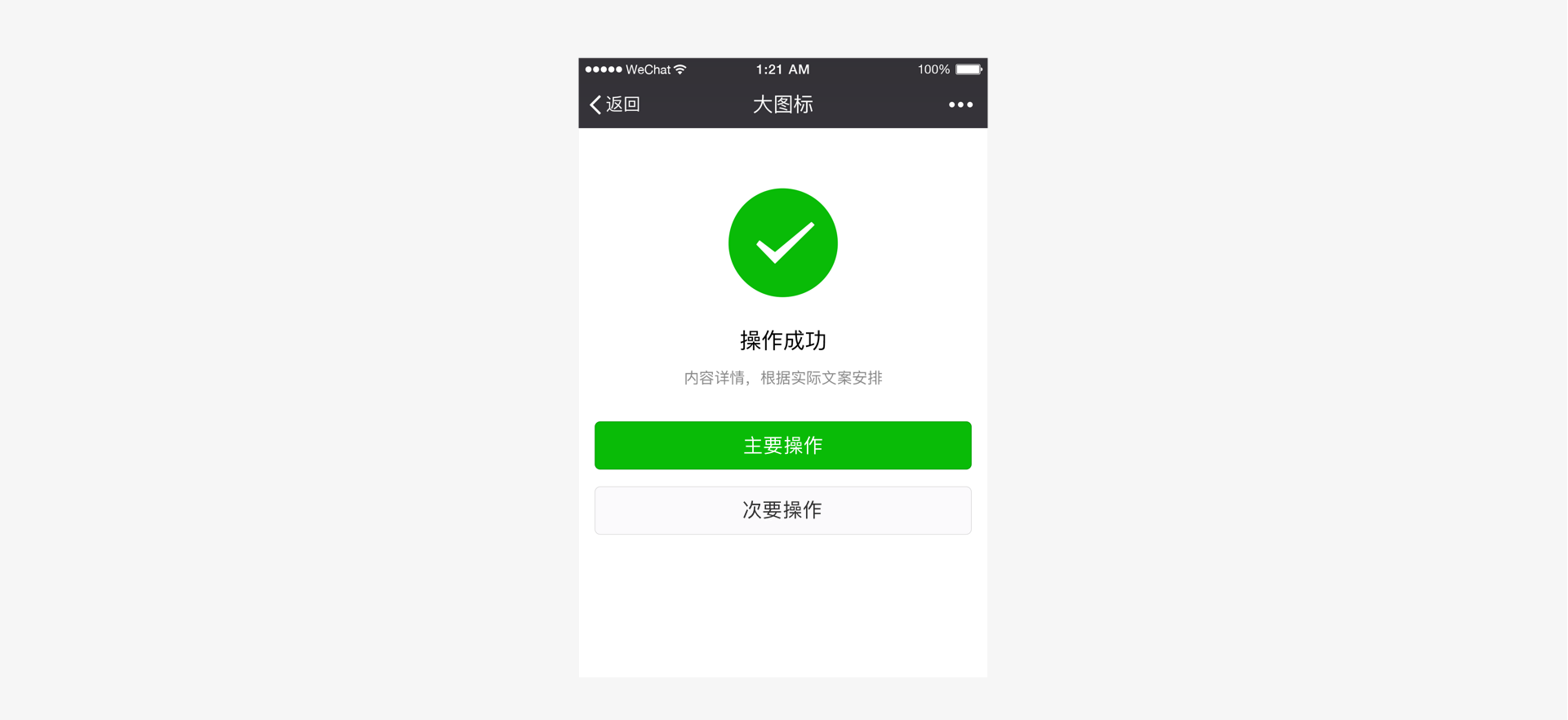 對于操作結(jié)果已經(jīng)是當前流程的終結(jié)的情況,可使用操作結(jié)果頁來反饋。這種方式最為強烈和明確的告知用戶操作已經(jīng)完成,并可根據(jù)實際情況給出下一步操作的指引。