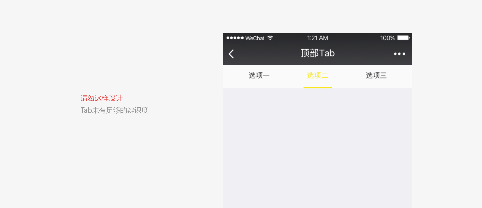 開發(fā)者可根據(jù)自身功能設(shè)計需要在頁面內(nèi)添加自有導(dǎo)航。并保持不同頁面間導(dǎo)航一致。但是受限于手機屏幕尺寸的限制,小程序頁面的導(dǎo)航應(yīng)盡量簡單,若僅為一般線性瀏覽的頁面建議僅使用微信導(dǎo)航欄即可。