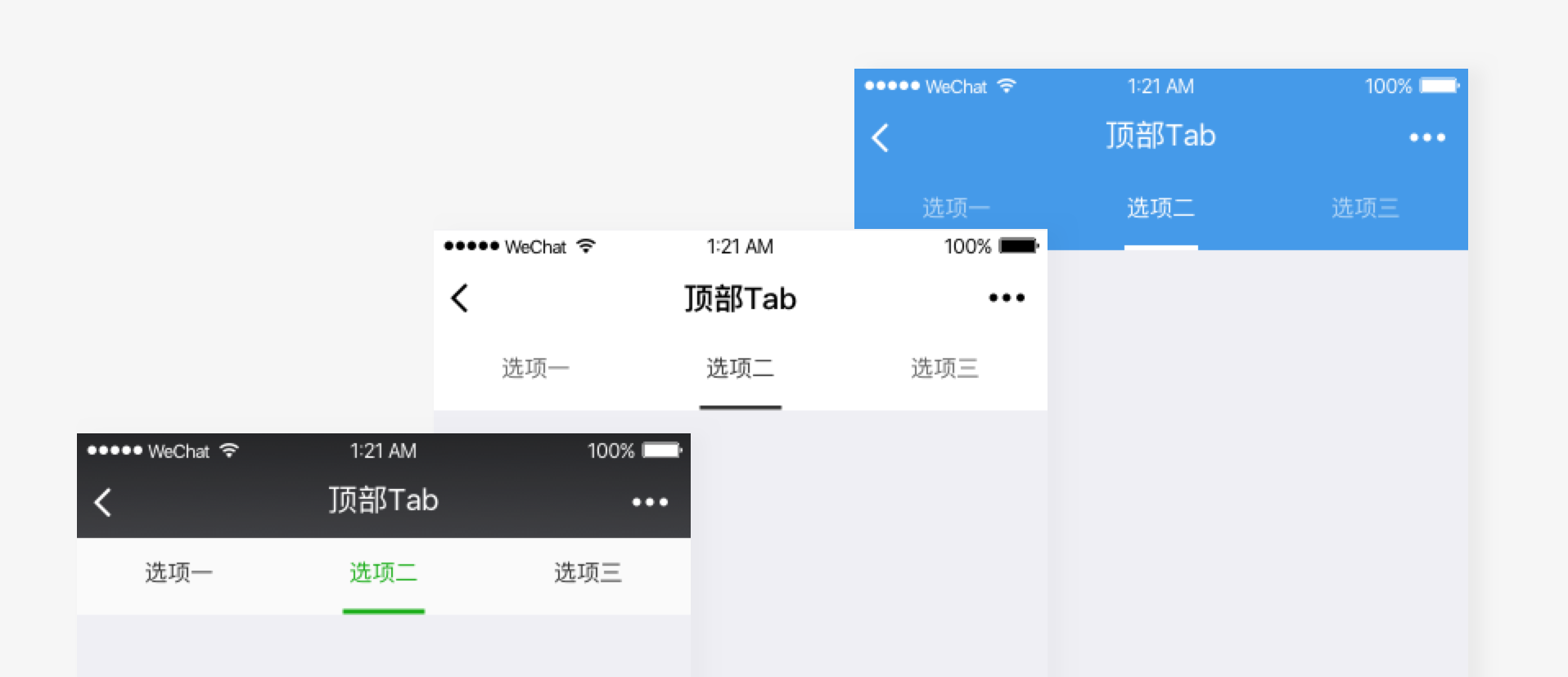 小程序?qū)Ш綑谥С只镜谋尘邦伾远x功能,選擇的顏色需要在滿足可用性前提下,和諧搭配微信提供的兩套主導(dǎo)航欄圖標。建議參考以下選色效果: