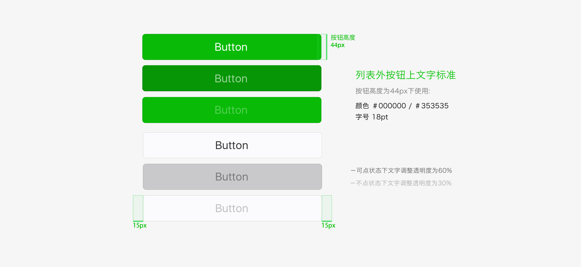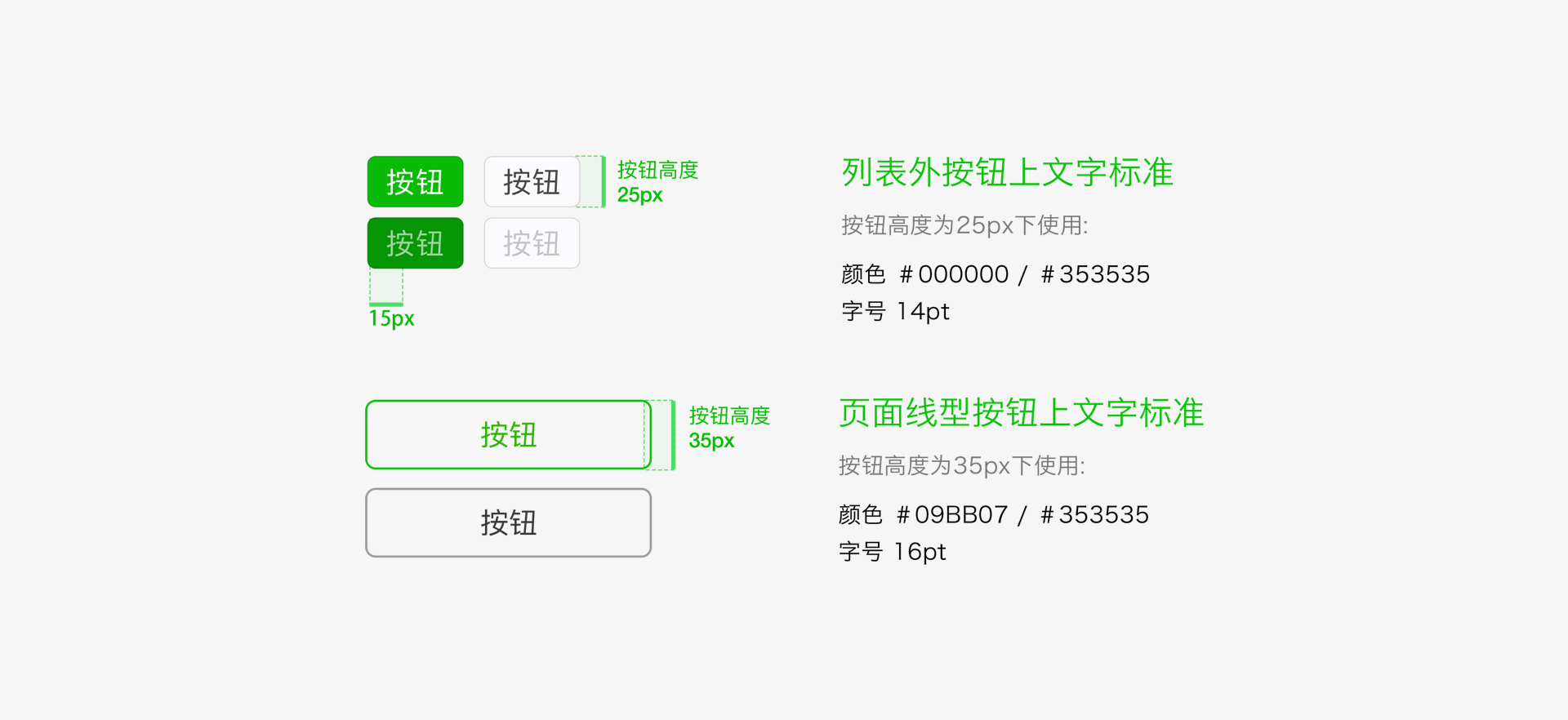 按鈕高度為35px下使用: 顏色 #09BB07 / #353535 字號 16pt