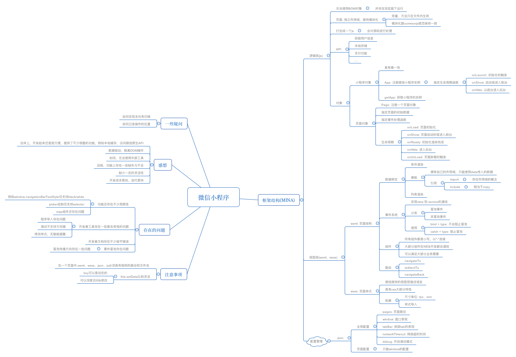 在業(yè)內產生了很大影響,業(yè)內從很多角度進行了分析。對于我個人,很幸運地拿到了一個開發(fā)者賬號,利用周末研究了小程序的框架、開發(fā)過程,期間遇到了一些問題,然后用一張圖總結下這兩天的學習內容及心得體會。