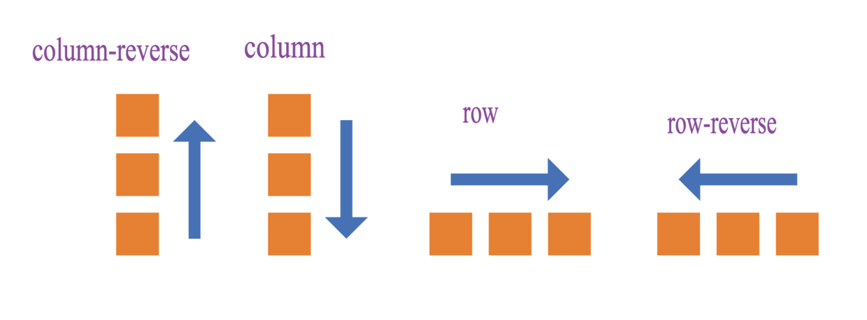 圖中的實例展示了使用了不同的flex-direction值排列方向的區(qū)別。