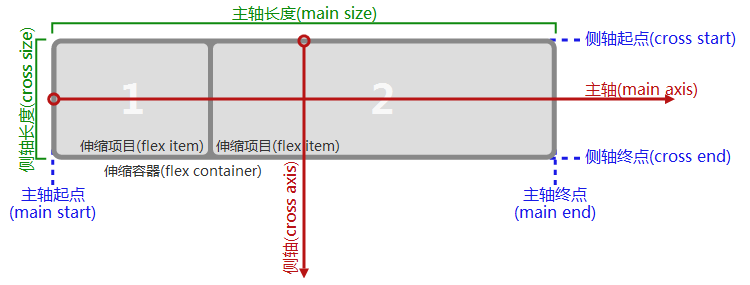 容器默認有兩個軸:主軸(main axis)和側(cè)軸(cross axis)。