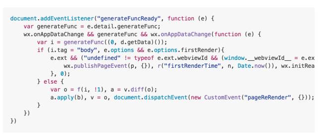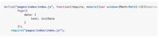 為了運行一個Page,我們需要有一個Virtual Dom,即用WCC轉換后的函數(shù),如: