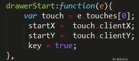 左滑從觸摸事件開始,當(dāng)然需使用的參數(shù)在外面最好先定義一下: