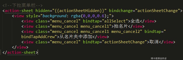 用戶已建分組點(diǎn)擊進(jìn)去的是點(diǎn)擊頂部菜單按鈕出現(xiàn)下拉菜單欄,這里直接使用微信提供的組件。
