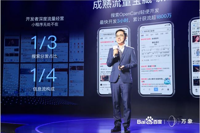 百度是信息和知識的入口,生態(tài)內(nèi)有大量和知識緊密相關(guān)的場景。對此百度也為開發(fā)者們提供了高價值資源專供通路及專屬的分發(fā)激勵機(jī)制。楊帆向開發(fā)者伙伴呼吁,希望開發(fā)者拿出珍藏資源,如版權(quán)、原創(chuàng)、高時效、差異化的資源等,通過與百度做價值交換更好發(fā)揮這些資源的品牌曝光及變現(xiàn)轉(zhuǎn)化的價值。