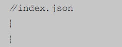 在index.json文件中,只需添加一對(duì)空“{}”就可以?開(kāi)啟index.js文件,輸入以下代碼:
